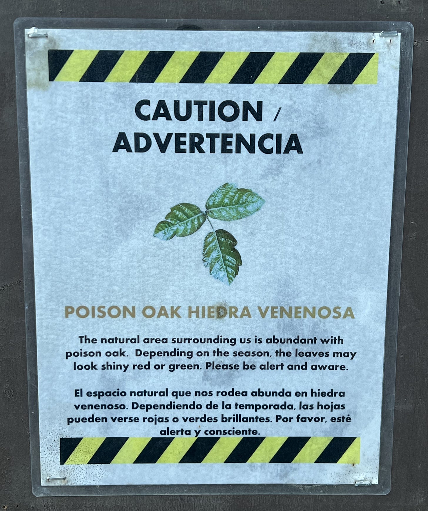 What, you might ask, does this murderous iteration of human ophidiphobia (fear of snakes) have to do with Poison Oak? Well, like snakes, some of which, as we know, happen to be venomous, Poison Oak, or Toxicodendron diversilobum, doesn’t exactly pass the “warm and fuzzy” test. Both have a habit of appearing suddenly, out of nowhere, with potentially unpleasant results. Hearing, close by, the threatening sound of the rattle belonging to an invisible Western Diamondback has its botanical equivalent in that awful moment when your hand, arm, shin or face brushes up against something on a hiking trail and you look back only to see those shiny, “Leaves of Three” nodding in your wake. While not exactly life-threatening, such an encounter with Poison Oak is, at the very least, a classic “Oh, Fuck” moment.